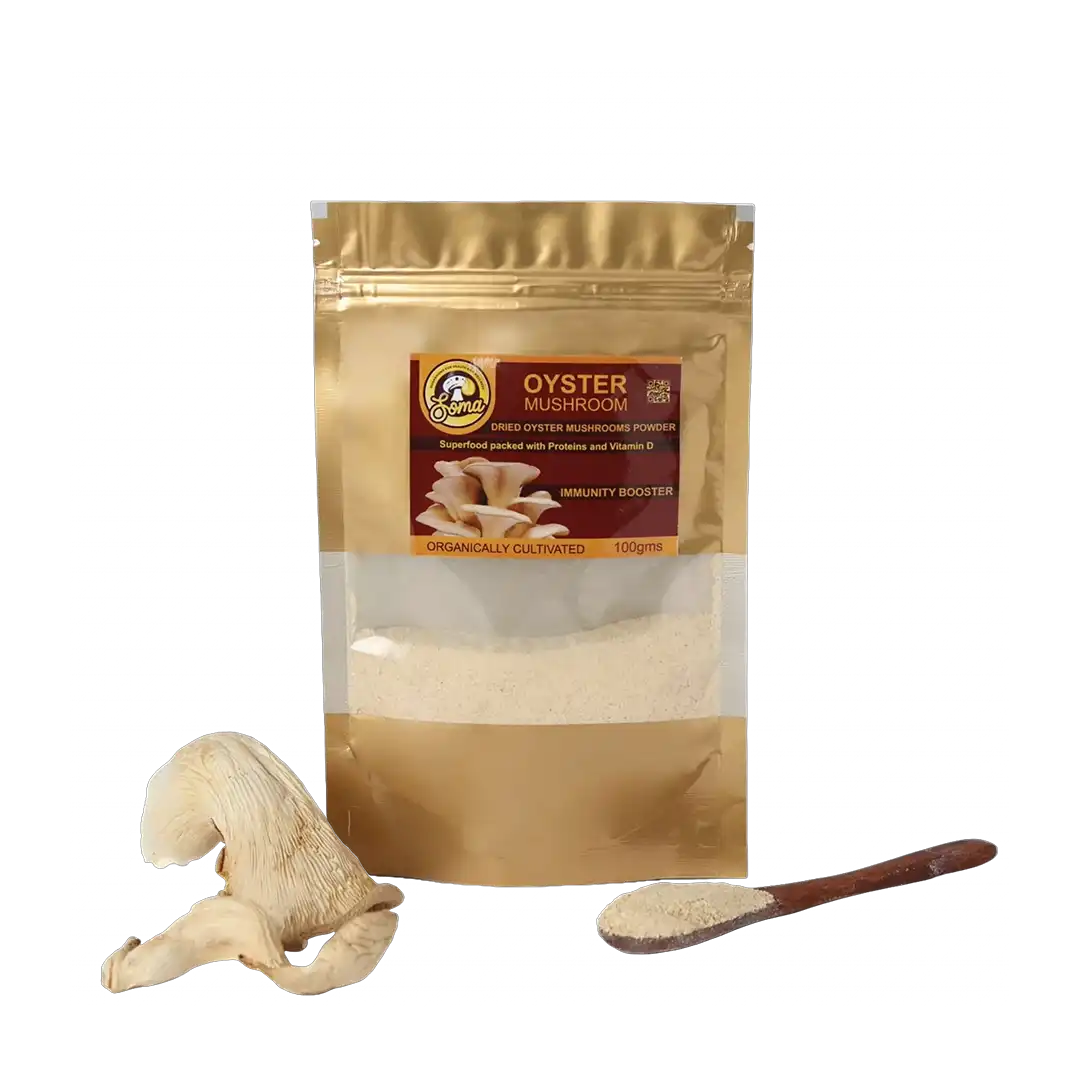 At SomaShrooms, oyster mushrooms are cultivated carefully and processed to preserve their bioactive compounds.